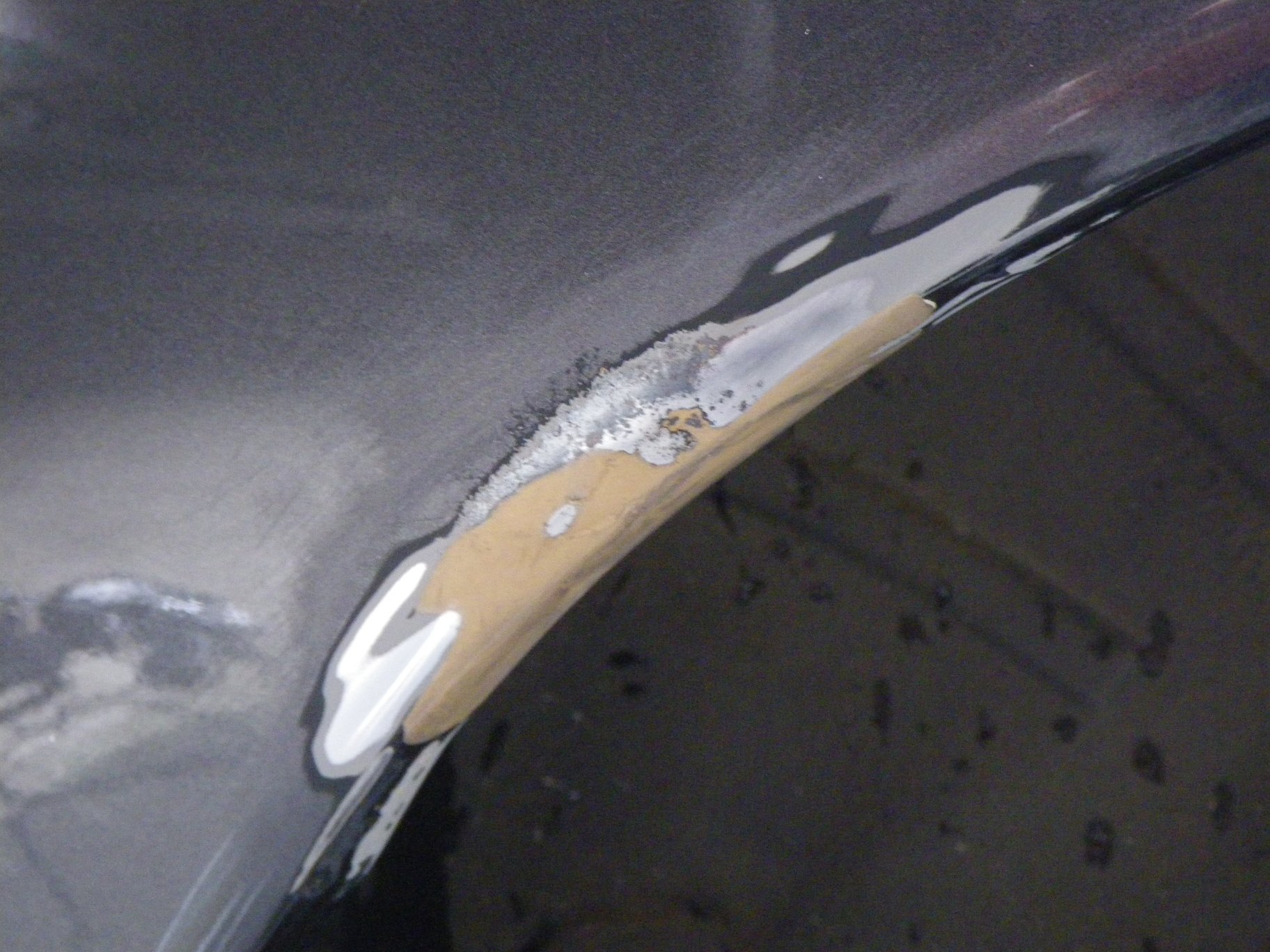 箱スカ時代、サーフィンライン部を自宅塀にこすって削れた後を見たらなんとパテ盛りだった。